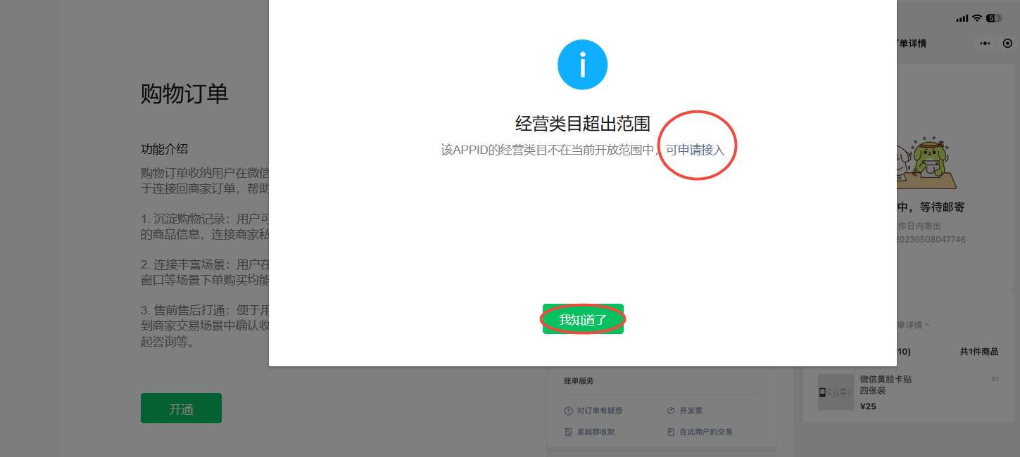 如果显示“经营类目超出范围”,那和经营类目有关-暂时未开放,就点“我知道了”就行
